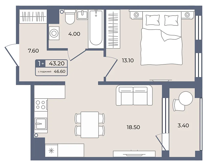 жилая 42.6 м²