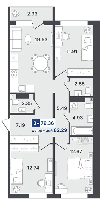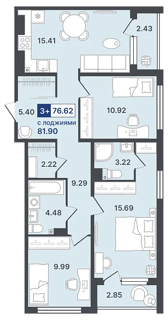 3-комнатная №76