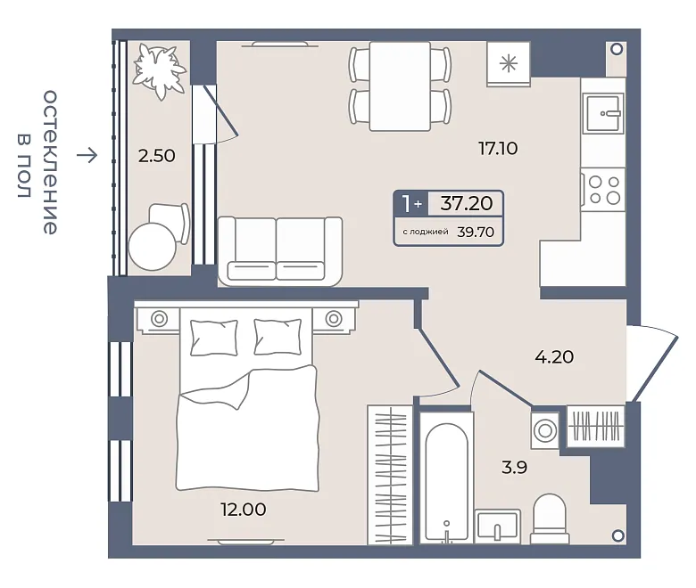 жилая 37.32 м²