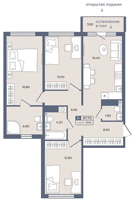 3-комнатная №132