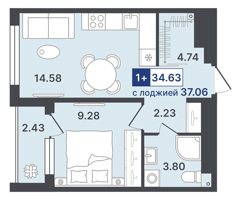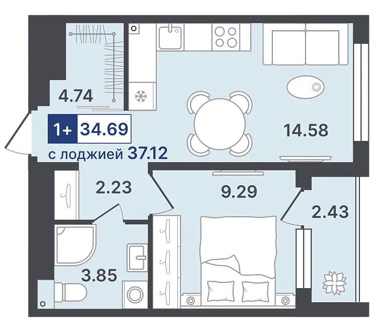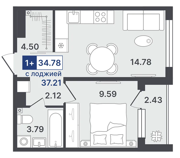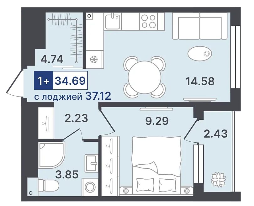 жилая 12.34 м²