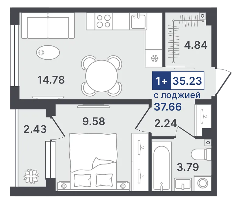 жилая 9.58 м²