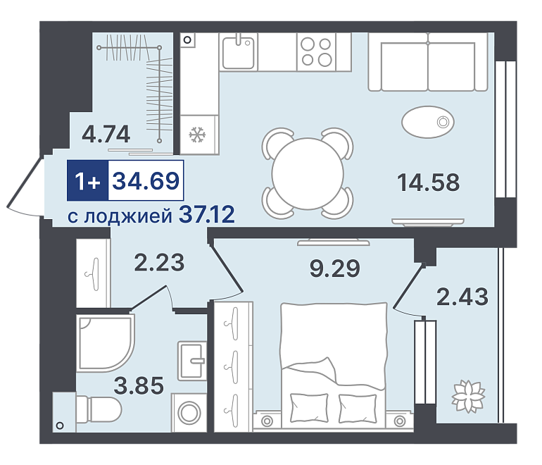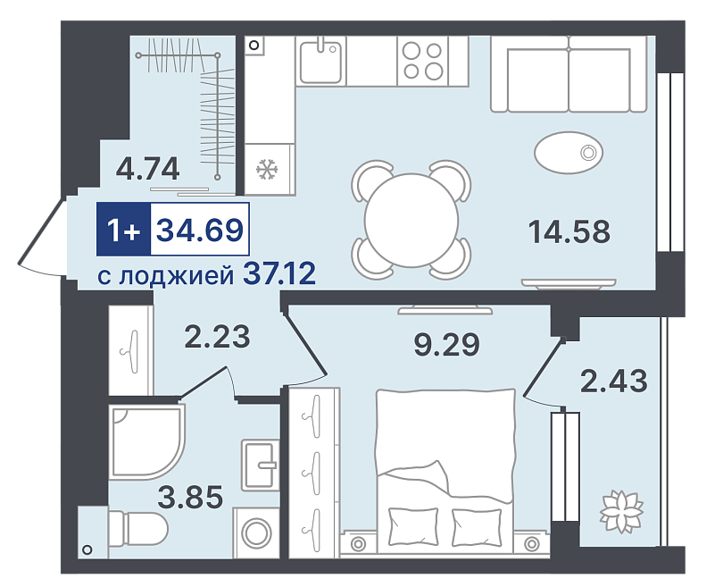 34.69 м²