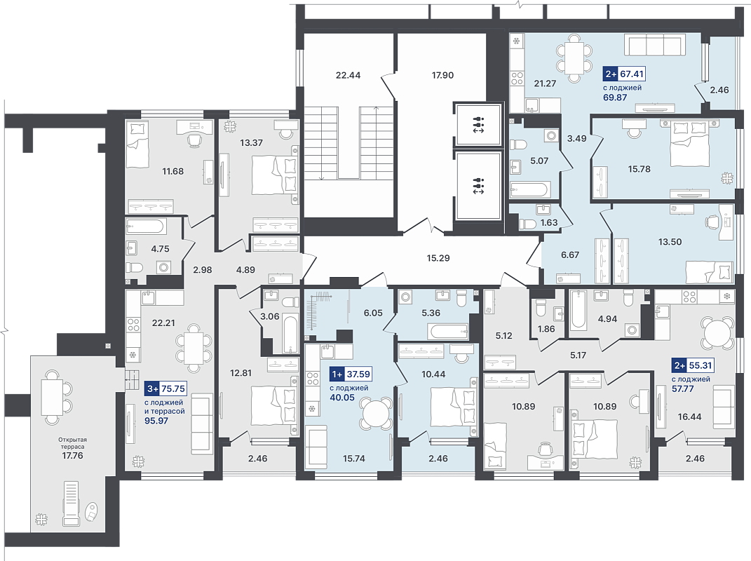 2-комнатная квартира №71 67.41 м2