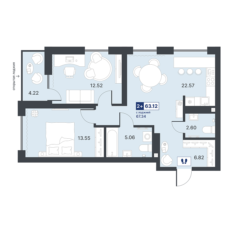 2-комнатная квартира №20 63.12 м2