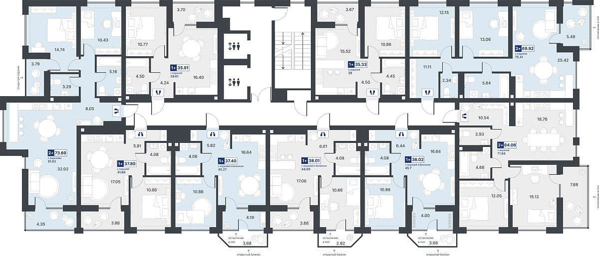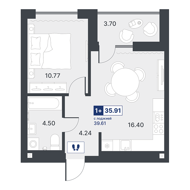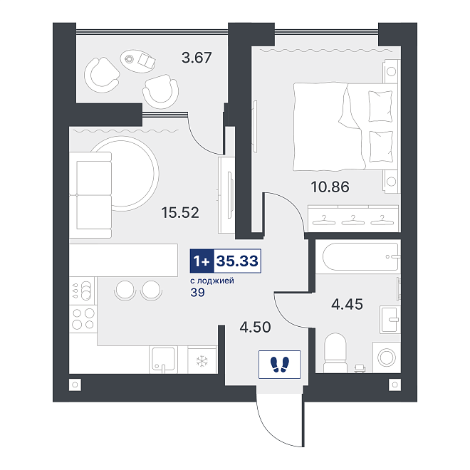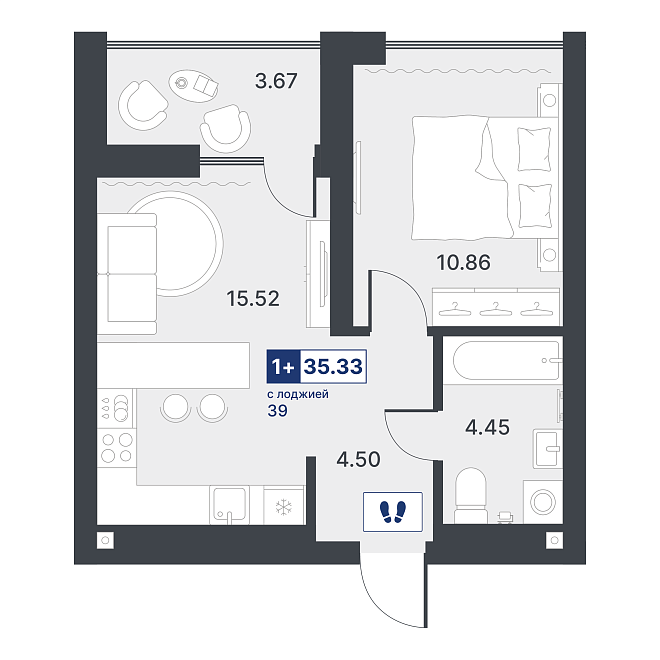 1-комнатная квартира №72 35.91 м2